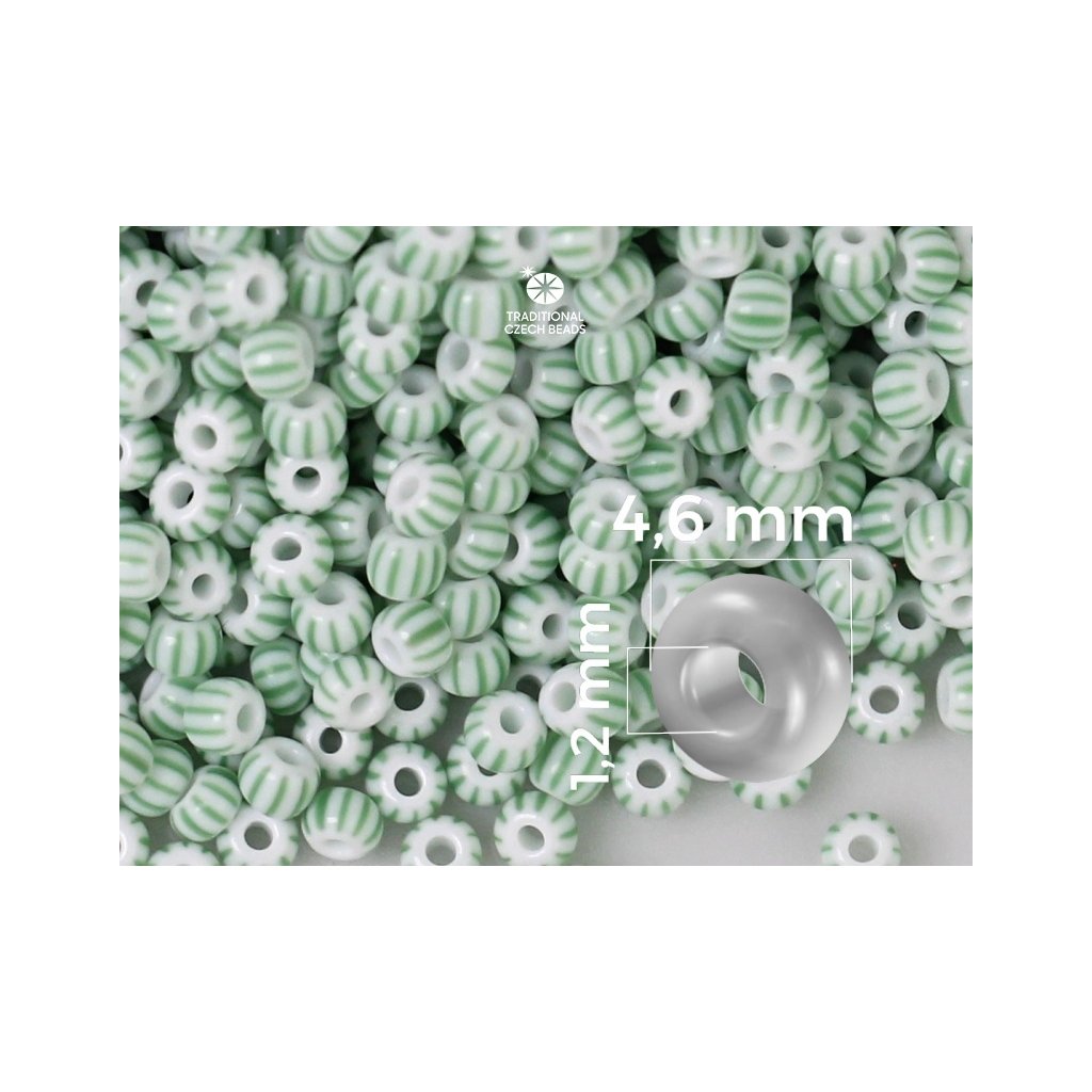 Preciosa STRIPED rokajl 5/0 4,6 mm Zelená + bílá 03851 20 g