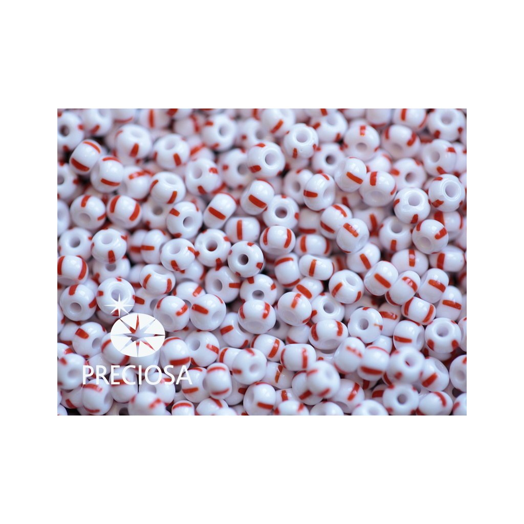 Preciosa STRIPED rokajl 7/0 3,5 mm Bílá+červená 03890 20 g
