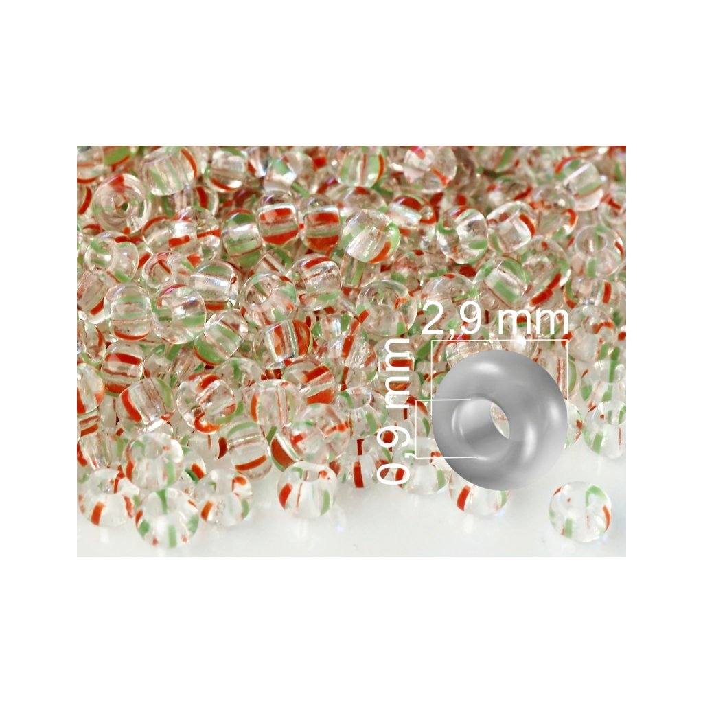 Preciosa STRIPED rokajl 8/0 2,9 mm Čirá Červená Zelená 00950 50 g